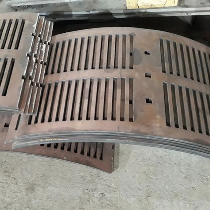 Колосник дробилки представляет собой сегмент колосниковой решетки, через которую проходит переработанный материал после дробления. Конструкция с продольными щелями позволяет эффективно отделять частицы нужного размера, обеспечивая стабильную работу оборудования и необходимую производительность.
