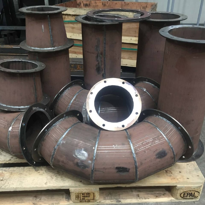 Отвод под 90 градусов используется в местах резкого изменения направления потока. Именно такие участки трубопровода подвергаются максимальному износу, так как частицы материала с силой ударяются о внутреннюю поверхность. Применение стали Hardox позволяет существенно снизить скорость истирания, продлить межремонтные интервалы и повысить общую надёжность системы. Отводы под 90° востребованы в горнодобывающей, цементной, металлургической и перерабатывающей промышленности.